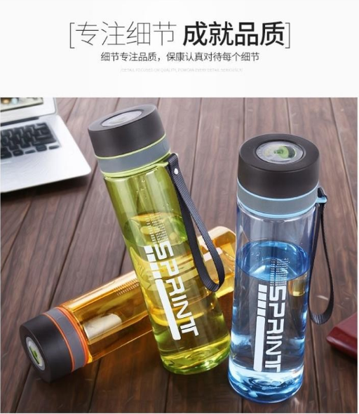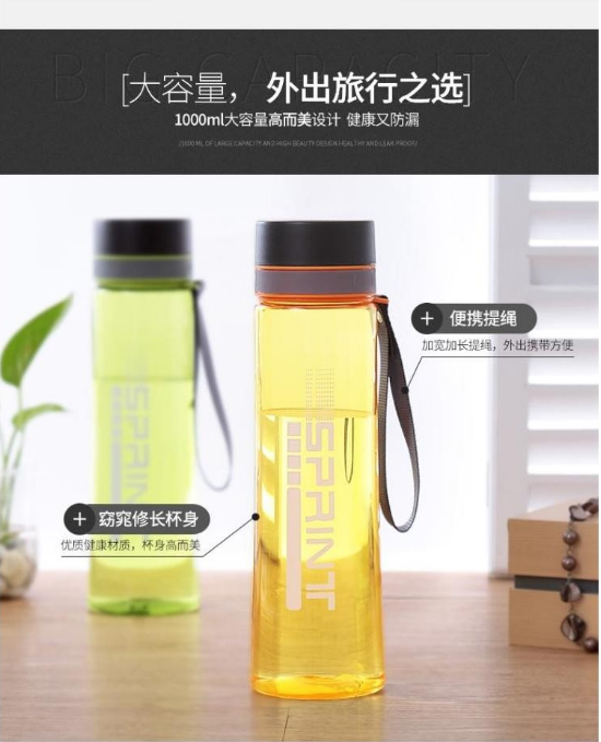 產(chǎn)品特點:食品用PC材質(zhì),月牙弧形纖細腰身,加寬加長提繩,外出攜帶方便,讓您喝的放心的水杯。
